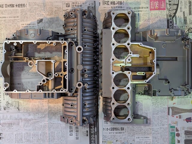 KZ1300はZ1/Z2などと違ってクランクシャフトは一体型なのでクランクベアリングはプレーンベアリングです。プレーンベアリングはオイルクリアランスの管理が重要ですが、今となっては補修部品の入手は困難です。しかし、もちろんサービスマニュアル記載の上限値を超えて損耗したエンジンを組み立てるわけには行かないので出来るだけ確認作業を行います。クランクシャフトの曲がり、振れは確認したので次の段階はオイルクリアランスの確認に”プラスチゲージ”を使いました。